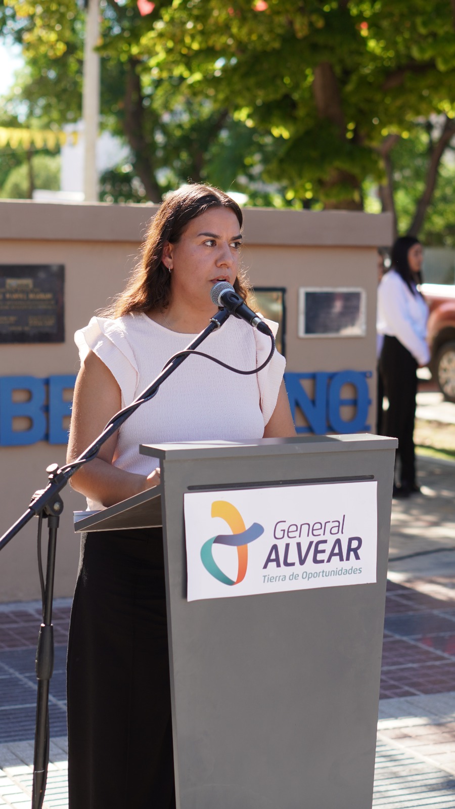 La delegada distrital, Jimena García, destacó en su mensaje la identidad comunitaria de Alvear Oeste y el trabajo orientado a mejorar los servicios y el orden urbano. Señaló que la gestión local prioriza acciones vinculadas a limpieza, iluminación, mantenimiento de espacios públicos y atención a las necesidades de los habitantes. Agradeció el acompañamiento del intendente y del equipo de la Delegación Municipal.
