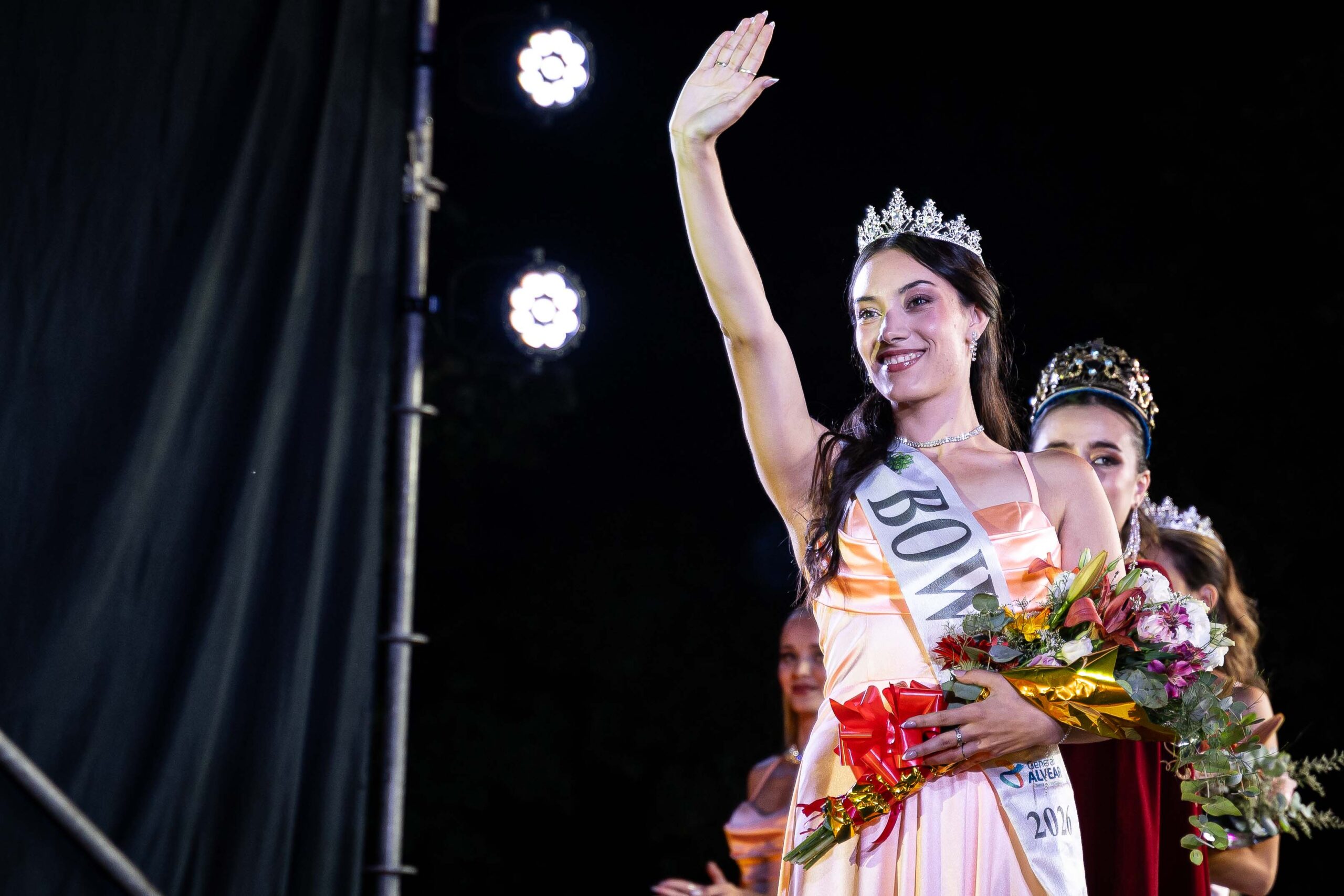 En representación de Alvear Oeste fue presentada Aitana García, de 18 años, estudiante con ingreso a la carrera de Medicina, quien destacó a la Vendimia como una expresión cultural que refleja el esfuerzo y la dedicación de quienes trabajan la tierra, subrayando su valor para la identidad de la comunidad.