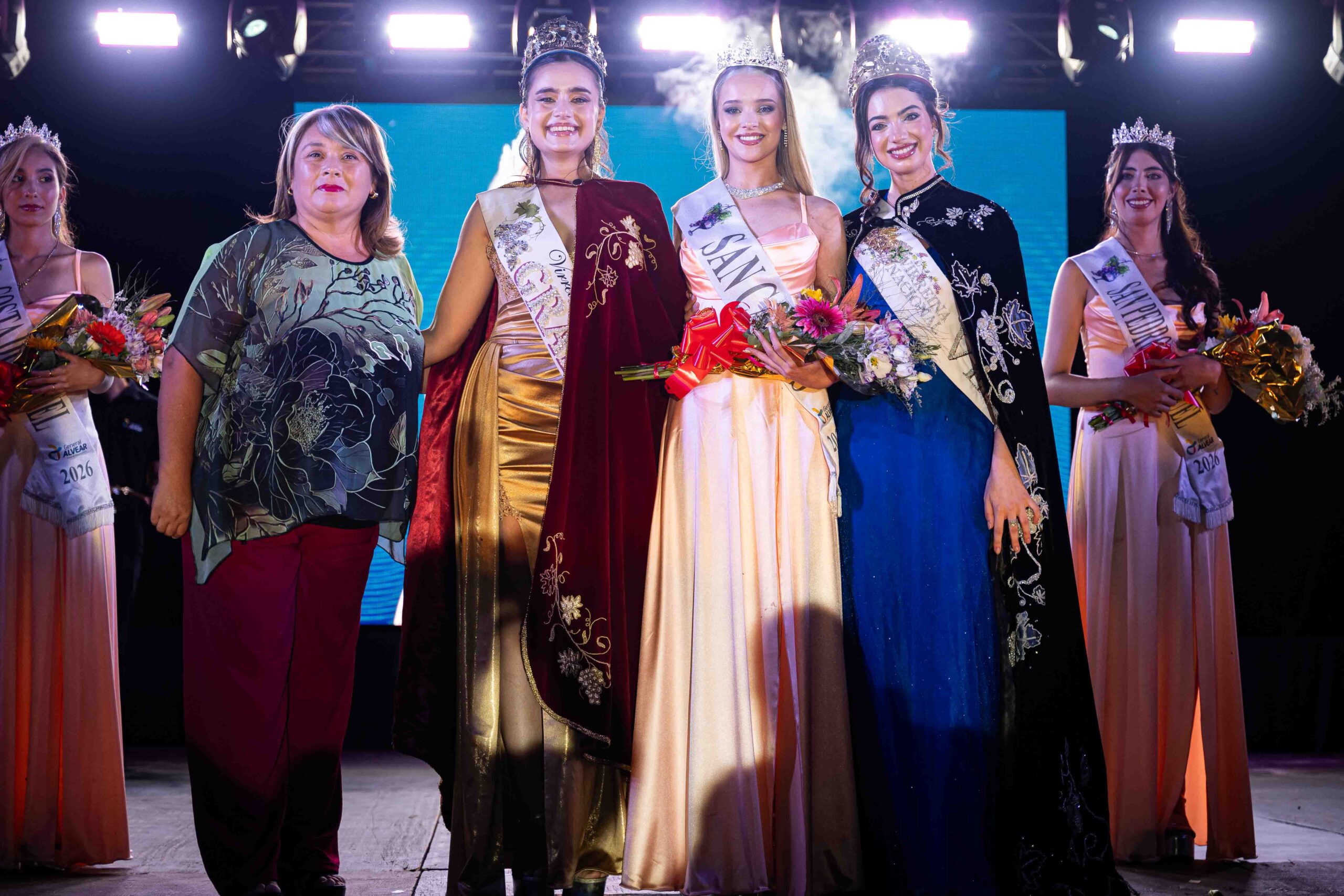 Durante el encuentro fueron presentadas las reinas de Alvear Oeste, El Desvío, San Pedro del Atuel, Costa del Atuel, Bowen y el barrio San Carlos. Cada una de ellas compartió un mensaje vinculado al significado de la Vendimia y al reconocimiento del trabajo de los agricultores del departamento.