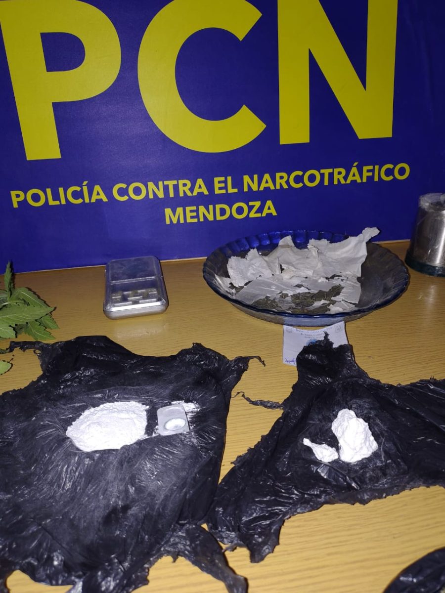 En el domicilio se secuestraron semillas de cannabis sativa, envoltorios con marihuana y cocaína —tanto en polvo como compactada—, un frasco con cogollos, cinco plantines de marihuana, una balanza digital, recortes de nailon y un teléfono celular, entre otros elementos utilizados para el fraccionamiento y la venta de drogas.