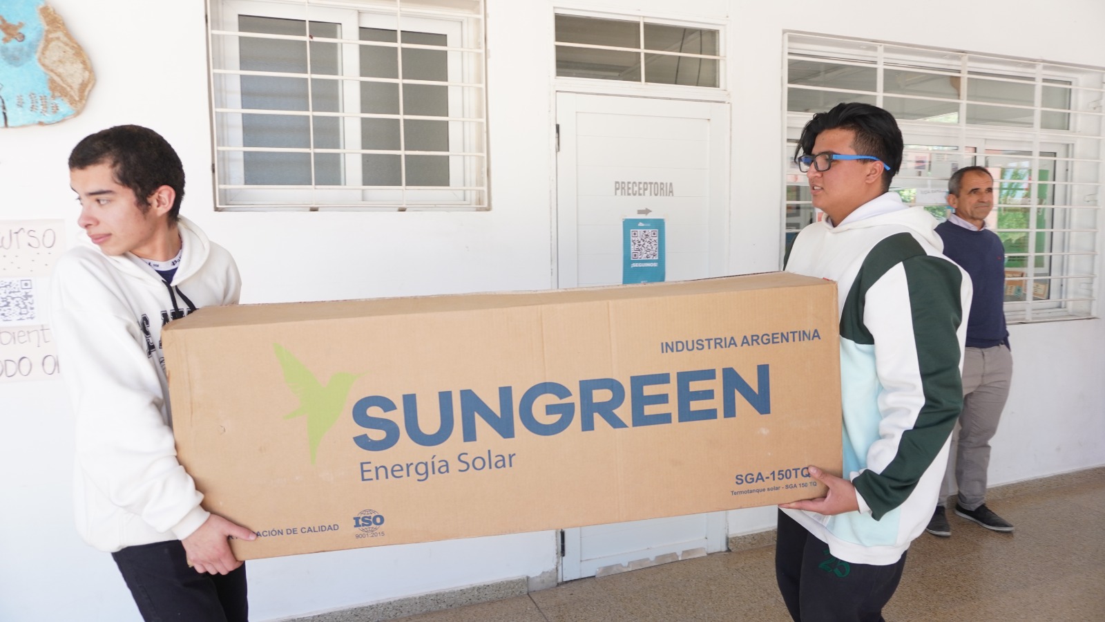 Entregaron un termotanque solar a la Escuela El Ceibo para impulsar la eficiencia energética