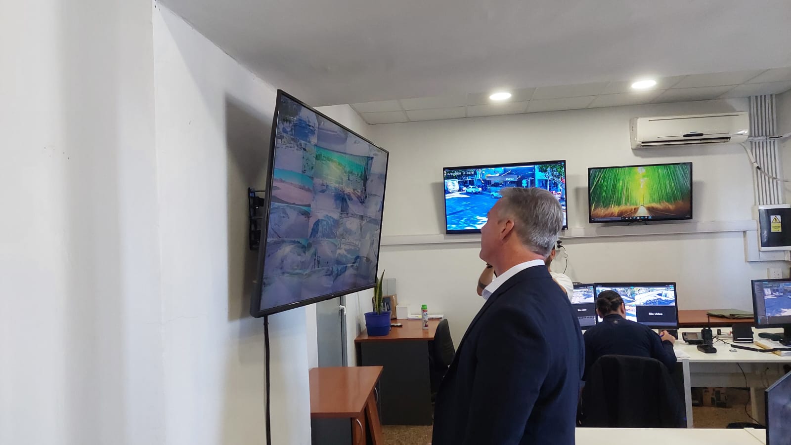 Con la firmeza que caracteriza su gestión, el intendente Alejandro Molero visitó esta mañana el Centro de Monitoreo para evaluar la factibilidad técnica y operativa del sistema de videovigilancia escolar, un proyecto de vanguardia que busca dotar de cámaras de seguridad a todas las escuelas del departamento.