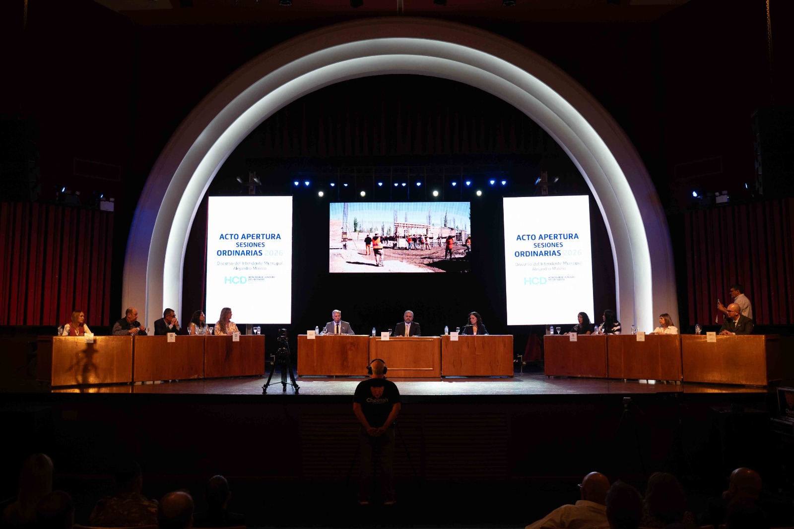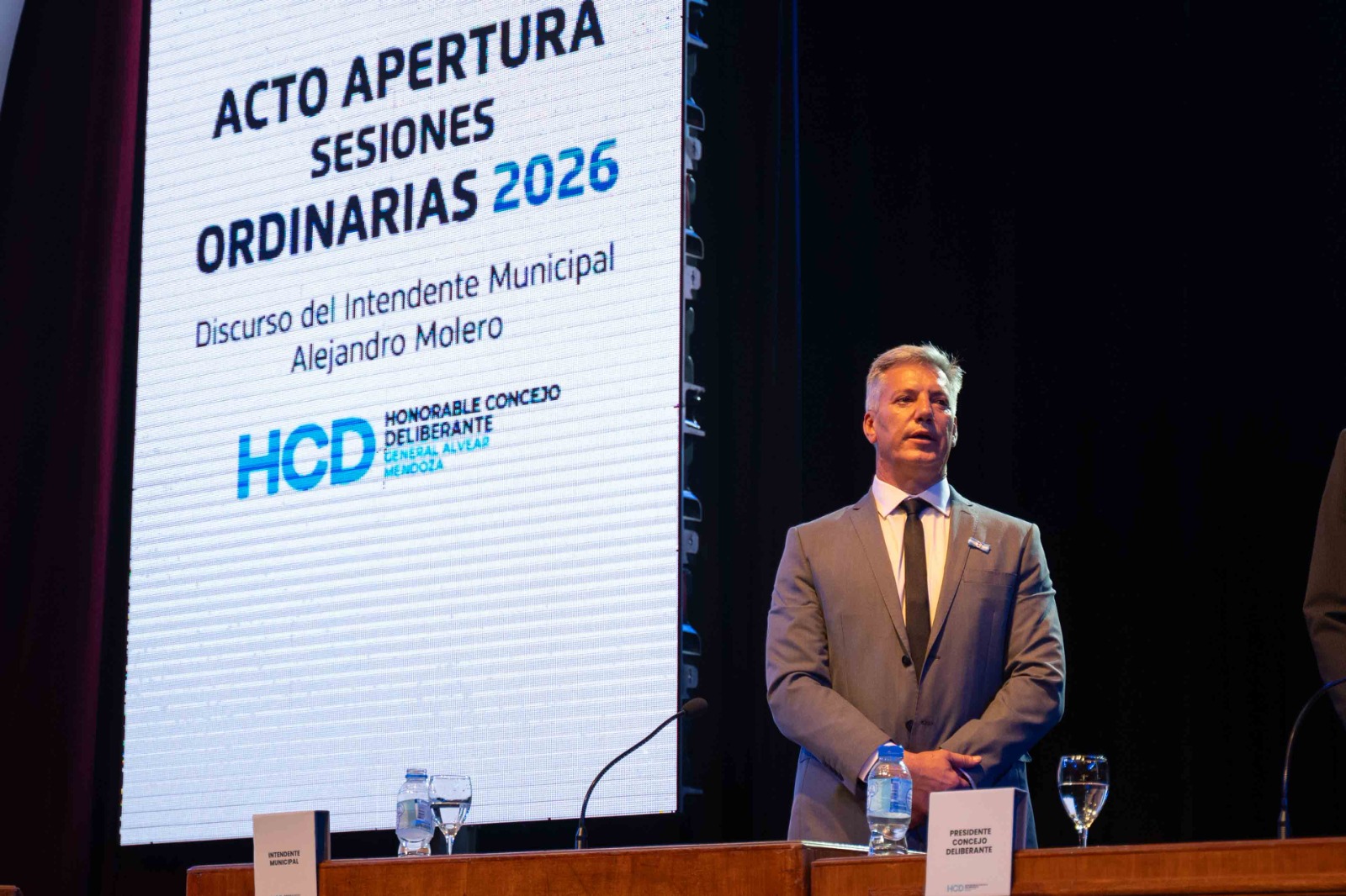 El intendente Alejandro Molero encabezó este miércoles por la noche la apertura del período de sesiones ordinarias 2026 del Honorable Concejo Deliberante, en un acto desarrollado en el Cine Teatro Antonio Lafalla, que reunió a concejales, legisladores, funcionarios, representantes de instituciones y una importante concurrencia de vecinos.